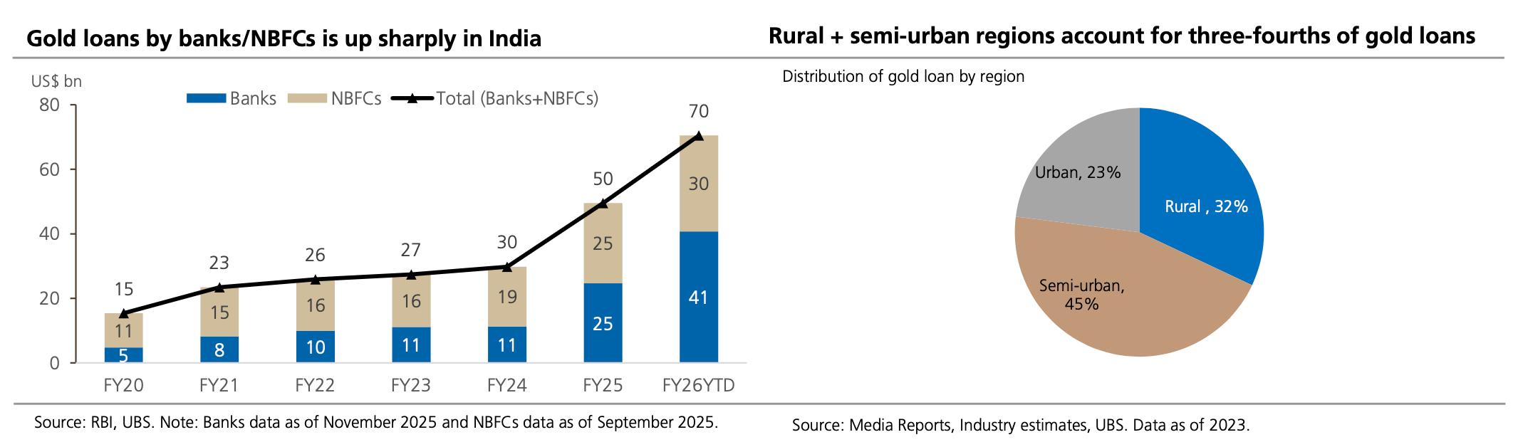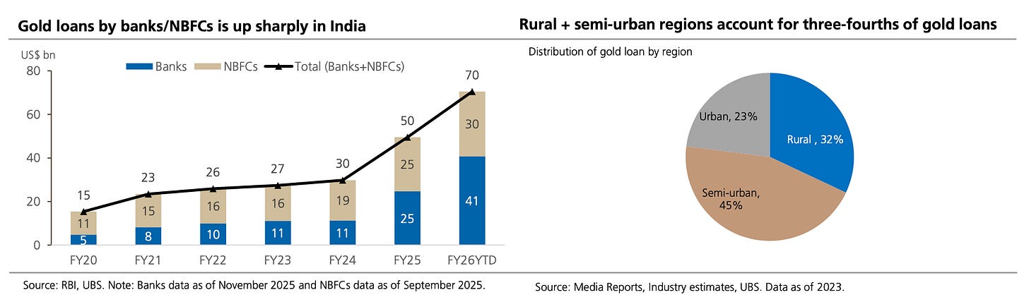 Loans against gold in the personal loan segment, grew 128% YoY and 86% FY YoY growth, reaching ₹3.83 lakh crore ($42.3bn). Borrowers are just able to borrow much more, even with limits on loan to value (LTV).