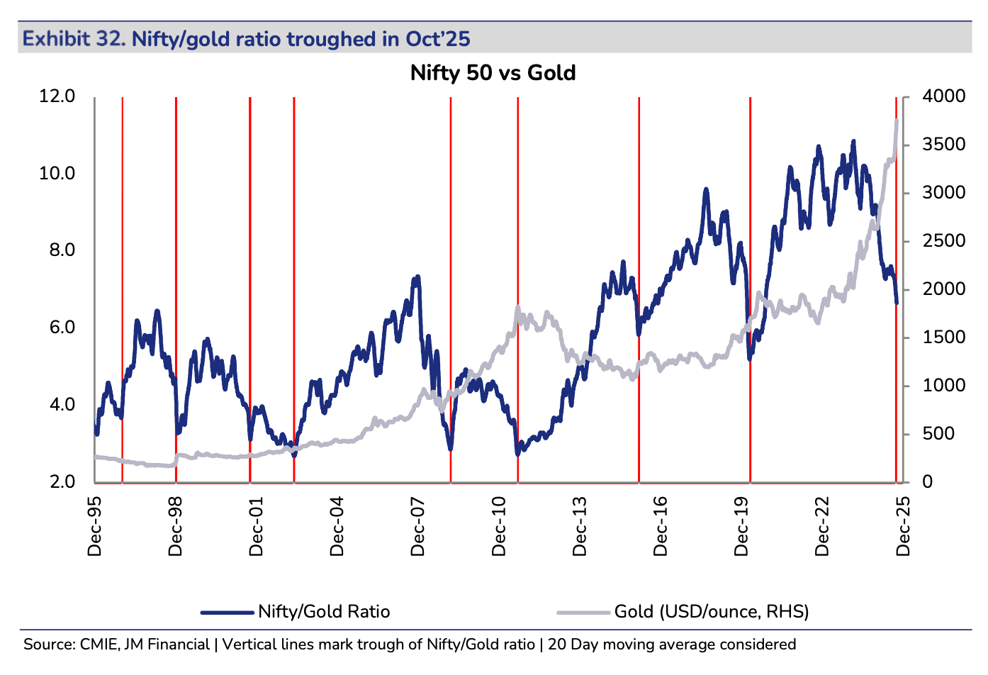 For India specifically: watch rupee volatility (sharp moves of 3-5% in a month signal stress), sustained FII outflows (three consecutive months above $5-7bn is a pattern shift), gold loan NPAs (a leading indicator of household stress despite on-paper wealth gains), and any sudden tightening of gold import duties back toward 15%+ (the current account deficit turning critical).