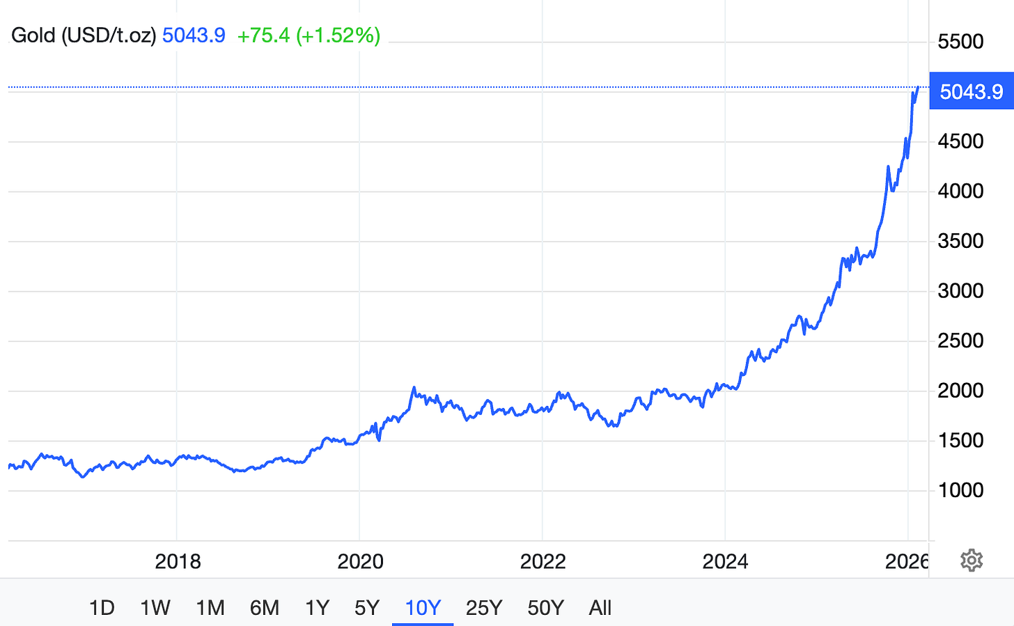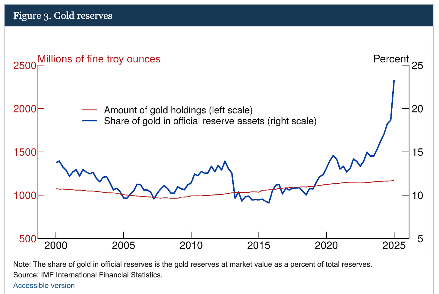 Gold seems to have reassumed its historical role as the “final settlement asset” - the one asset that requires no intermediary, no clearinghouse, no permission from a foreign government to use. Every other major asset, from bank deposits to Treasury bonds to corporate stocks, represents someone else’s promise to pay. Gold just exists.
