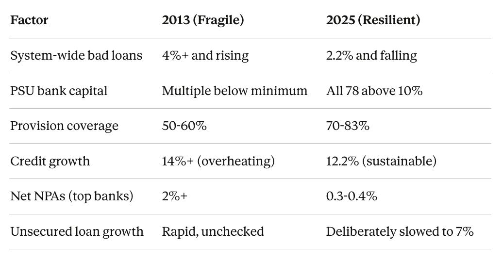 What I found was interesting. The Indian financial system is the strongest its been in decades, by every metric. But the more I dug into the data and the narratives, a different story emerged. A story about a financial system that has become so obsessed with safety that it may have forgotten what it’s supposed to do i.e. take risk.
